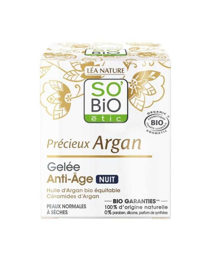 Offrez à votre peau une nuit réparatrice avec la Gelée Anti-Âge Nuit Argan de SO BiO. Ce soin nocturne innovant mobilise la puissance régénérante de l’huile d’Argan bio équitable, reconnue depuis des siècles pour ses propriétés nourrissantes exceptionnelles.