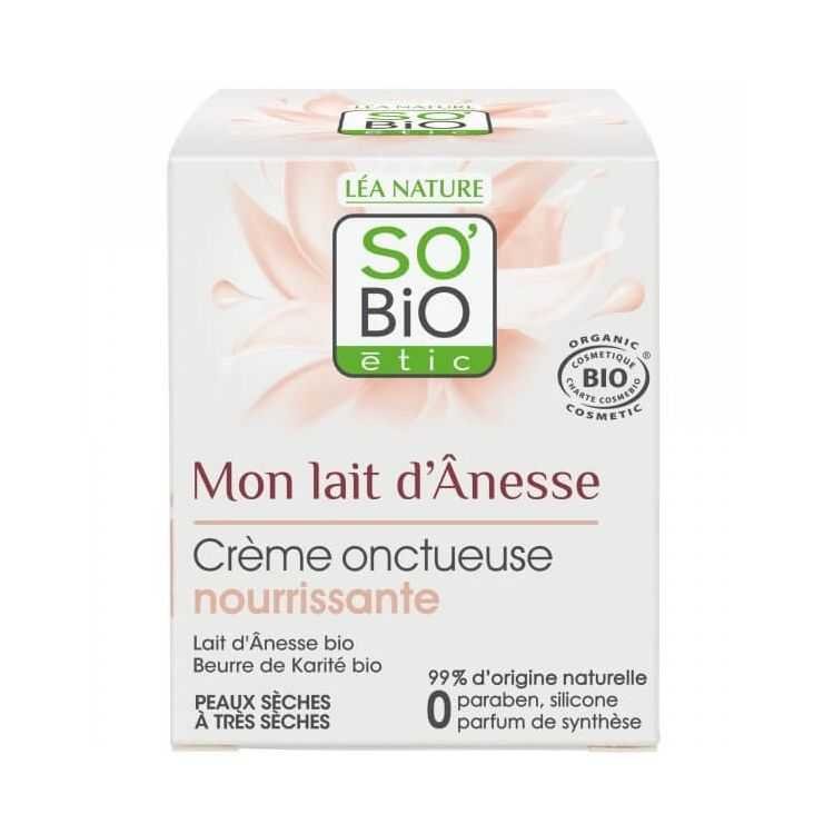 Découvrez la richesse du lait d’ânesse avec la Crème Onctueuse Nourissante de SO BiO, votre allié quotidien pour une peau revitalisée et éclatante.