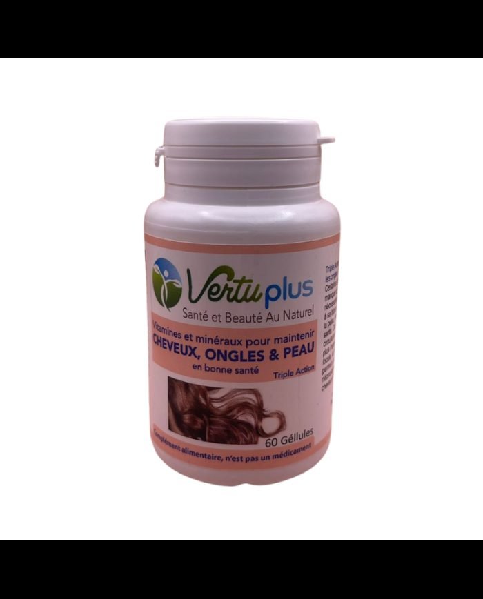 Offrez à votre corps les nutriments dont il a besoin avec VERTUPLUS, la solution complète pour sublimer votre apparence de l’intérieur. Ce complément alimentaire innovant rassemble une formulation scientifiquement équilibrée de vitamines et minéraux essentiels, spécialement pensée pour renforcer vos cheveux, fortifier vos ongles et illuminer votre peau.